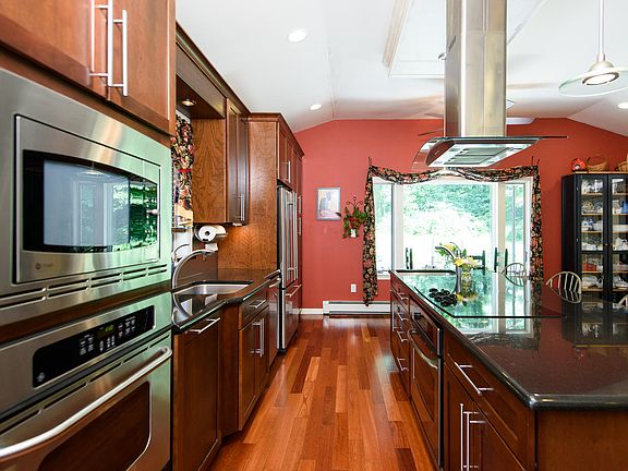 Tucked into a serene hillside and surrounded by woods and greenery, this unique and truly one of a kind raised ranch is for someone who won't abide by the ordinary. Upon entering this home you'll be struck by the Brazilian Cherry Floors in the AMAZING Kitchen with custom cabinetry, oversized island w/seating, 2 full size sinks, SS appliances-including 2 ovens & professional vent hood, built-in pantry w/pull out shelves, granite counters, and casual conversation area with French doors to a concrete Patio. Also featured on the main level are living and dining rooms, both offering hardwood floors and sliding doors that step onto a deck, which feels completely ensconced by nature as you enjoy your meals as well as the views of this 3.5 acre lot. The main level Master Bedroom offers fan, double closet, sliding door to the deck and marble bath with large walk-in shower w/body jets, heated floors and custom built-ins. An additional Bedroom with fan and private bath completes the main level. The Lower Level presents a Family Room with wood stove and French doors to a Patio, 3rd Bedroom with walk-in closet and cedar lined closet, and updated tiled Bath. Wonderful outdoor spaces include a large Deck, 2 Patios, and a private yard highlighted by beautiful landscaping and garden area. Other notable features include newer central air conditioning, Andersen windows & sliding doors, and 2x6 construction. This unique hideaway is nestled within the distinguished Owen J Roberts school district and offers easy access to major routes and the Turnpike. Quality is the theme from the exterior to the interior of this wonderful home!