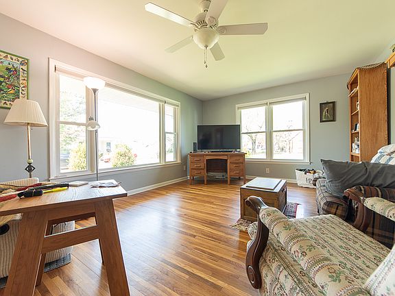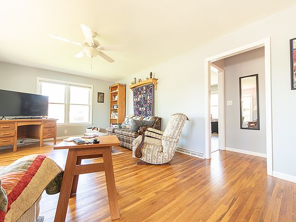 Nice two-bedroom, one bath bungalow featuring a maintenance-free limestone exterior and beautiful hardwood floors throughout is move-in ready. A full basement offers many useful possibilities to the needs of a new owner. The spacious kitchen contains an abundance of cabinet space and pantry. Tile flooring and a tiled tub/shower surround tastefully adorn the bathroom. A fenced backyard and detached garage complete the picture. This location allows access to a choice of local amenities and low traffic volume.