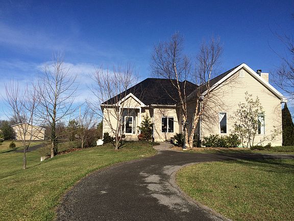 This is a beautiful, open style custom built home with many possibilities. You will love the 10-foot ceilings and hardwood floors throughout with exception of bath, entry and kitchen. Crown molding throughout the first floor and a wood burning fireplace in the living room. The kitchen has cherry cabinets, stainless steel appliances, tile floor, dishwasher, closet with pantry and washer/dryer. Good sized Master Bedroom and the Master bath has a tub, shower, double sink, bidet, water closet and walk in closet. The lower level is perfect as an in-law suite or rental apartment and can accommodate a wood burning stove. It could easily be retrofitted to have a full kitchen. Replacement triple-pane windows installed in 2019. There is a 3-car garage detached garage with an apartment in the back. There is also a 40'X60' barn metal pole barn which, along with two run-ins is ready for your horses. Property is fully fenced.