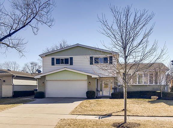 Move right into this lovingly cared for home just one block from K-5 @ Franklin Elementary School! Nice ceramic tiled foyer with huge coat closet right off garage. Dramatic living room and dining room with vaulted ceilings and huge bay window perfect for entertaining! Large eat in kitchen with granite counters and custom granite table. Lower level family room with sliding doors lead to yard. Master ensuite w/updated bath features walk in shower and granite vanity. 3 additional nice-sized bedrooms with large closets (all w/custom organizing installed) and second updated bath with custom tiled tub. Sub basement offers extra recreation room and loads of storage space. Fully fenced yard with covered patio and cedar shed. Tear off roof in 2008. All new windows from 2010. Furnace and A/C replaced in 2019. Hot water heater replaced 2020. Gorgeous hardwood floors under all carpet (except family room). Just 1/2 mile to Dee Road Metra station !