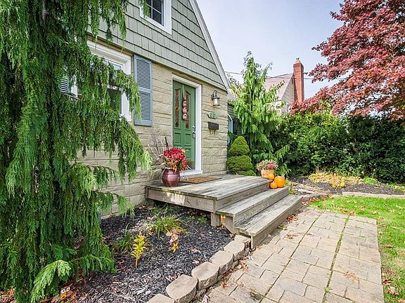 Check this one out! This cute bungalow has fabulous curb appeal. As you enter the home through the foyer, you will find hardwood floors that continue throughout the living room and dining room. The living room offers a beautiful bay window, a wood burning fireplace and doors that lead you out the patio to the backyard. From the living room, you will step into the dining room that has wood trey ceiling with crown molding, a large picture mirror and a corner built in lighted hutch. Directly off the dining room is the kitchen that offers white painted cabinets, stainless appliances, under counter lighting, and a door that leads to the backyard. As you make your way to the second floor you will find the master bedroom with hardwood floors, two closets and a built in bookcase. The second bedroom also has hardwood floors, a large closet, built-in bookshelf and a small bonus room that is attached. Both bedrooms share the full bath that has a tub/shower combo, built in cabinets and drawers, laundry chute and newer vanity with toilet. In the basement you will find an additional half bath and a finished bonus room. The backyard has a "resort" feel to it - offering a covered patio, six-person hot tub, cedar wood fencing, above ground pool, 650 sq ft deck made of treated pine and a shed for all pool equipment. The 1 car garage has automatic door and electric. Roof, siding, A/C - 2011, Furnace 9/16 - all dates approx. This home has so much to offer, don't let this pass you by!