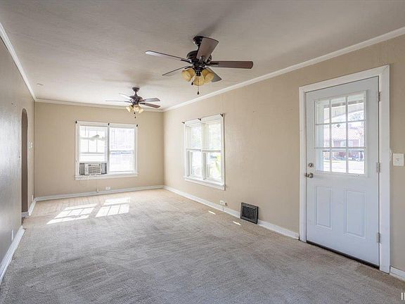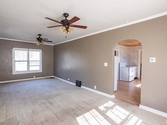 This starter home is situated on a spacious corner lot and includes an additional half lot. A concrete driveway is in place, and a garage could likely be added, if permitted by the city. In the kitchen, you will find vintage metal cabinetry, a space set aside for the washer and dryer, and enough room to add an island if you choose. A New high efficiency furnace was installed in 2021. The roof was replaced in 2014. The possibilities are endless as to what can be done to make this cozy house a home!