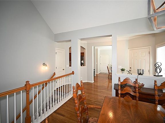 Enjoy resort like living in beautiful Staley Farms Private Golf Community. Come relax on the SCREENED IN PORCH overlooking the golf course in this 3 bedroom 2 and a half bath reverse 1 1/2 story home. Hard wood floors throughout main level. Main level laundry. Updated light fixtures recently installed. This neighborhood offers many amenities such as golf, exercise room, exercise trail, play area, pool & clubhouse. Main floor master suite w/ access to screened in porch & main level laundry. Finished basement features a family room, 2 secondary bedrooms, full bath & storage area. Kitchen boasts Corian counters.