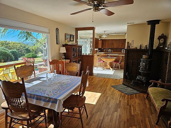 If you are seeking elbow room, a serene setting with captivating views, spacious living areas and a climate controlled huge shop come take a look at this well maintained rambler just minutes from the freeway. All season's enjoyment awaits you with the covered patio, open Trex deck and cozy wood stoves. Newer high end stainless appliances compliment this open kitchen. Enjoy your meals in this eat-in kitchen and spacious dining room for family gatherings. Recently refinished original hardwood floors and replaced tile floors in entryway and bathrooms. Fresh paint on exterior of home and shop with refaced exterior chimney. Two outbuildings with electricity and a huge shop with high ceilings along with separate HVAC system. Hike out your back door or hop in the car and hit the freeway in a flash. Almost forgot to mention you will have the nicest neighbors ever. Same family has owned this home for nearly 70 years. Call or text if you would like to see this home. Agents welcomed.