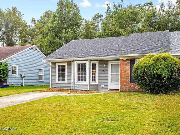 Cheaper than rent!!! Come see this cute 2-bedroom, 2-bathroom, fully equipped townhouse. The living room is appointed with a wood-burning fireplace while the kitchen has stainless steel appliances to include the refrigerator. There is also a washer and dryer in the unit. Both bedrooms have direct access to a bathroom with one also having a door to the hallway for guests. The backyard is spacious and has a small area for additional storage. This home is very close to shopping, restaurants, and Camp Lejeune's main gate is only minutes away. Come see this one today!