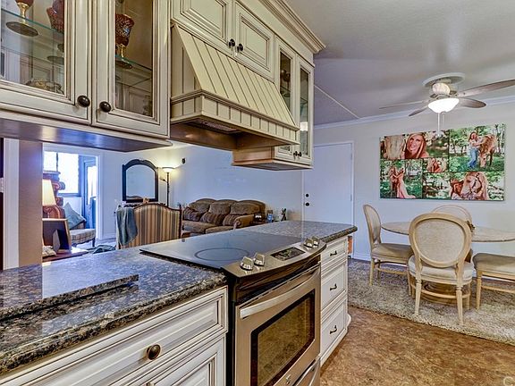 Beautifully remodeled 1BD/1BA Coronado co-op - no steps to entry!! This warm and inviting home enjoys a gorgeous kitchen featuring antiqued custom cabinets with soft close drawers, glass-front display cabinets, pantry area, wine storage shelves, corner display area, granite countertops, tile backsplash and stainless appliances. Dining area is brightened by a mirrored wall and cooled with a ceiling fan. Living room area focal point is the grand electric fireplace which provides heat and cozy ambiance. Sliding glass doors lead out to the enclosed balcony area with access to a small outdoor area as well. Remodeled bathroom features newly reglazed tub/shower combo, updated granite-topped vanity, faucets and fixtures. The bedroom is the only carpeted room and has mirrored closet doors and a very unique feature - a set of french-type door that lead out the enclosed balcony. The stained glass inserts open separately for a custom touch. Balcony currently features a small waterfall for ambient noise that can be enjoyed from the bedroom! Vinyl tile flooring (except for bedroom) and crown molding throughout. This one will feel like home the minute you walk in!! Laguna Woods Village active 55+ community features $11 golf on two courses, new golf starter clubhouse with cafe, bar and pro shop, tennis, pools, clubhouses, horse stables, theater, library, computer labs with classes, art and craft workrooms and classes, free bus service, taxi voucher program and golf cart pathways!!