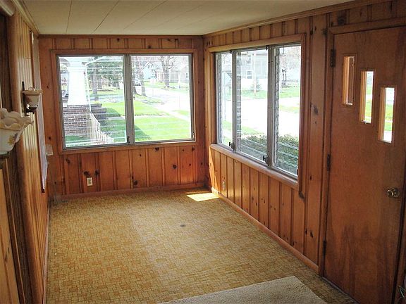 Charming 1.5 story bungalow that has been very well maintained over three generations of the family. This home boasts newer tip in windows (except 2 front windows from porch) and roof is less than 15 years. Fantastic detail includes enclosed knotty pine porch with built in bookcases, windows and screens for your porch enjoyment, original entry doors, arched entryways and most hardwood under carpet. Dining room has original glass corner china cabinet.There is one bedroom down with walk in closet and the 3 others up (ONE BEDROOM IS PASS THROUGH TO FRONT BEDROOM). Kitchen features an abundance of original shaker style white cabinets, newer laminate counters, vinyl flooring and all appliances (as is). Newer gas furnace, central air and new water heater. Back yard is fenced and features a beautiful flowering tree and access to one car garage with remote.