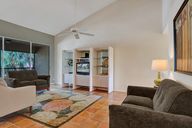 Full-size washer and dryerSoaring vaulted ceilingsTerra cotta tile flooringSerene garden viewsPrivate screened balcony