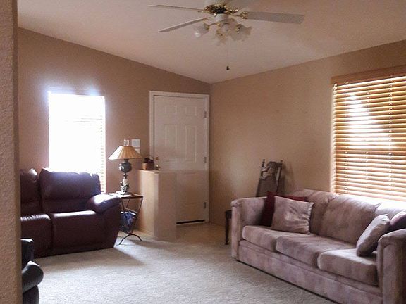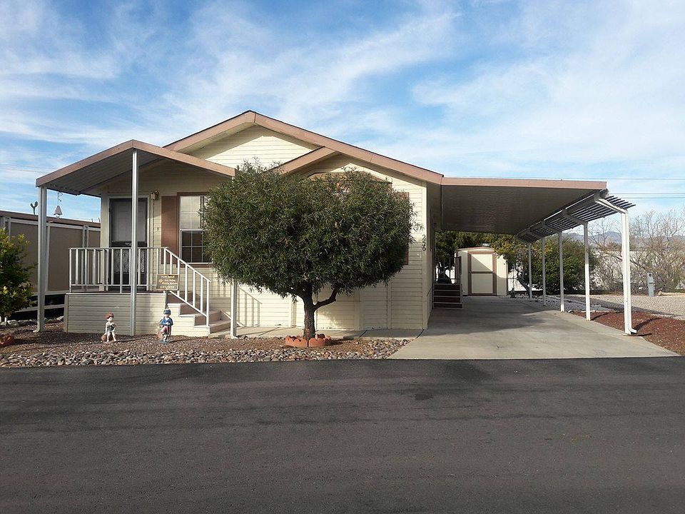 Located in beautiful Tucson Meadows Senior Park. Open floor plan home that backs up to desert with fabulous mountain views. Kitchen has stainless steel appliances and pull out drawers. Oak cabinets and skylights. Large master bedroom with nice size bath with big double shower. Lots of storage. Homes comes partially furnished. Park is a 55 plus park. Pet friendly.