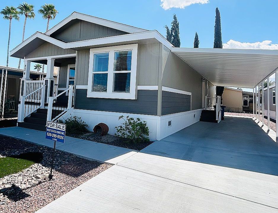 2023 Cavco with 2 Bedrooms +Den / 2 Baths! ~ WE PAY YOUR SALES TAX!!! ~ Open Kitchen/Living Room/Dining Room. ~ Enjoy the Catalina Mountain views from your front porch! ~Stainless Steel Appliances. ~ Energy Efficient. ~ Master Bedroom has spacious walk-in closet & walk-in shower. ~ Home comes with gorgeous, landscaped front yard. Schedule a showing today at 520-534-2107, sales staff is available M-F 8:30-4:30 and weekends by appointment.