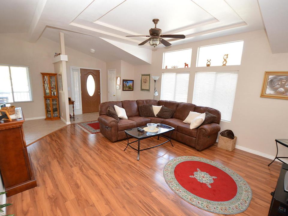 Come see one of the finest homes in the Tucson Meadows Community. Meticulously maintained home greets you with a large front porch with rolling shades , allowing you to enjoy the outdoor living of Arizona. Walk inside and it appears too good to be a manufactured home with beautiful laminate woof flooring and ceramic tile throughout the house. Kitchen has new cabinets, with granite counter tops and stainless steel appliances. Manufactured home is located in this great 55+ community. Sale is for the unit only, no real estate/land is included. Lot rent is $542/month. Community application and approval of all buyer's required.
