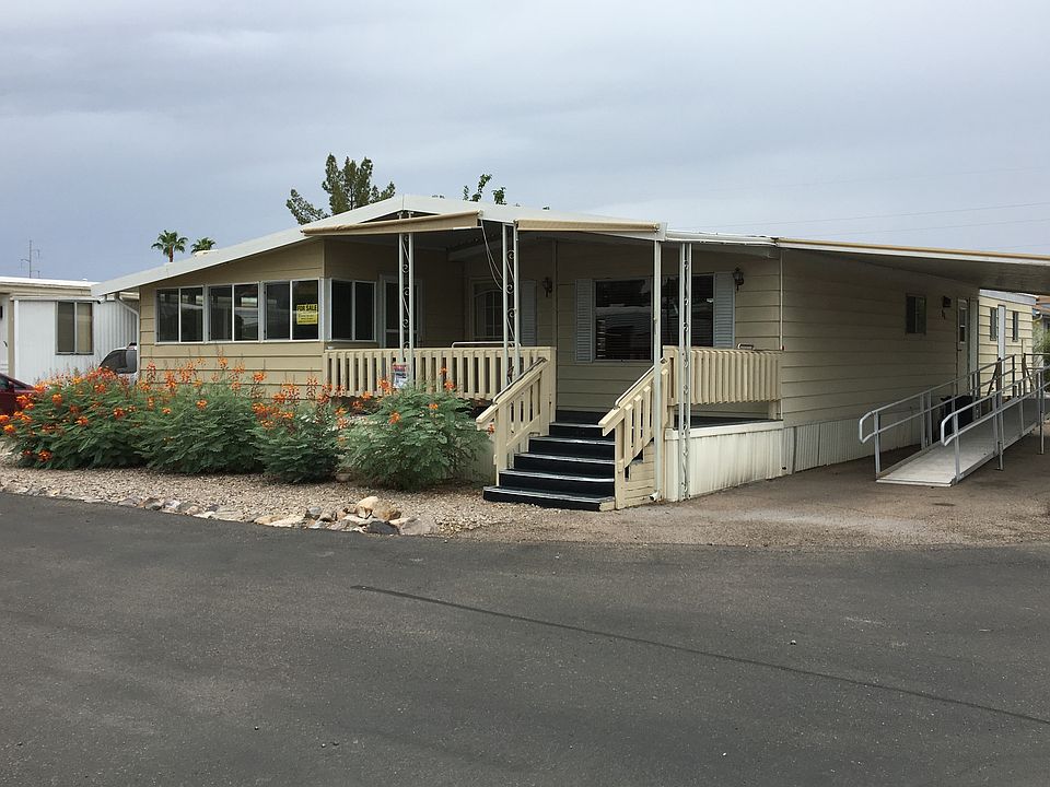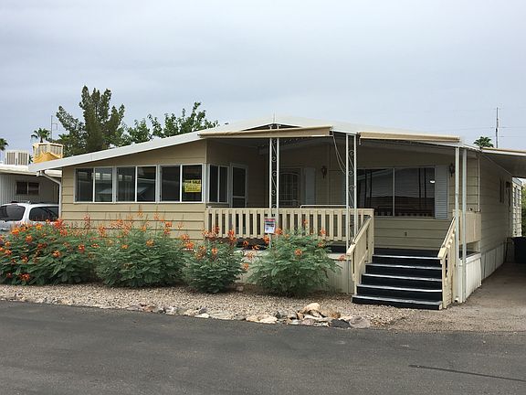 Clean doublewide in Tucson Meadows ready for new owner. Large 2 bedroom 2 bath with added on utility room to front of home. Nice large front deck for outdoor relaxing. The Central A/C gas pack has been updated and works beautifully. Front living room floor plan with central open kitchen. Huge pantry closet and stainless steel refrigerator complement plenty of storage and kitchen cabinetry. Separate laundry room area. Master bath complete with garden tub and shower. Home is located in premier park of Tucson Meadows. All amenities park. Home is within walking distance of clubhouse and sparkling pool. Please call JUSTIN @ (520)390-4876 to schedule a showing!