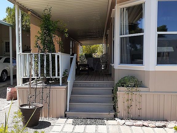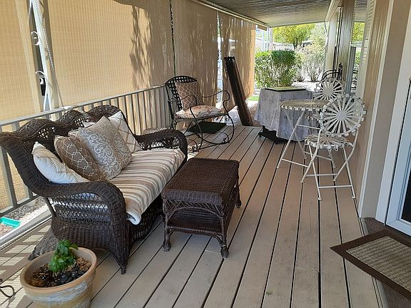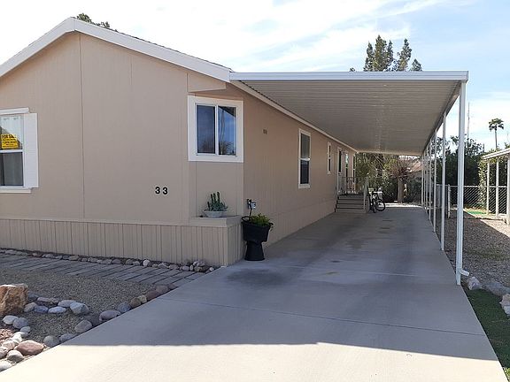 2004 Champion looks like new with current inspection in hand. Super clean and well maintained home features freshly painted exterior and interior. Interior has rounded corners and tape and texture. Cabinets have hidden hinges and a newer Bosch dishwasher in the kitchen and a view of the mountains from the sunny window. Take a look at this 2 bed 2 bath, cute front porch for morning and evening relaxing. Pavered area and back yard with shade in summer. Gas cooking and heat, washer and dryer stay. HOA dues are rent for space, there is an additional fee for the gate security that is staffed 24 hrs. Retirement living in Tucson Meadows, a 55 + community with security gate, clubhouse, pool hot tubs and fitness center with all of the activities. Lot rent in this park is 598 per month