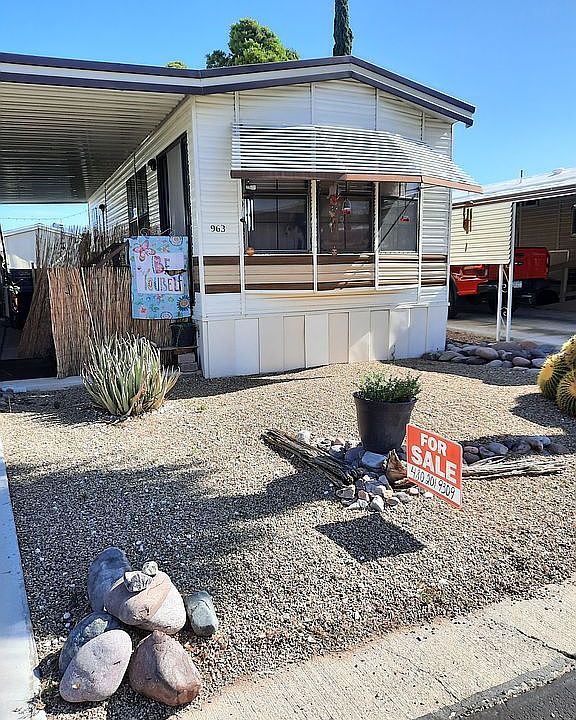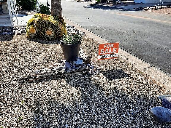 1987 CHAMPION PARK MODEL Come check out Tucson Meadows Mobile Home Park/Winter Haven RV a 55+ community and see what this lovely Park Model has to offer. A welcoming curb appeal with a palm tree and amazing barrel cactus will greet you! The large carport/driveway will comfortably fit two vehicles if needed. Carport is four years old and has bamboo privacy fencing along the entire side! This 'tiny casa' was lovingly remodeled less than 4 years ago and has a welcoming open floor plan that feels like a cottage. With peaked ceilings, it gives it a larger feel and you will forget that you are in a trailer/RV! The backyard area of the lot is fenced nicely for your fur kid and is really an open canvas for someone who likes to do gardening! There is a lovely ‘rock’ garden with mint, rosemary, mums, and other plants thriving! Cushioned pavers make a nice walkway area. A wonderful place to enjoy your early morning coffee, or evening cocktails! An 8’ x 10’ metal shed houses a front washer and provides a good amount of extra storage space. • A new back door with window was installed a year ago. • The new window air conditioner unit in the bedroom keeps the room as cold as needed. • 2-year-old air conditioner in the main area works great to keep the home cool. • An electric fireplace in the main living area adds ambience on cool mornings and evenings and keeps you warm and comfortable. • The large walk-in shower has grab handles and a handheld sprayer with a water filter. • Nice size hallway pantry/closet. • Large closet in bedroom. • The stove and refrigerator are older but work great. Selling semi-furnished including: • SERTA adjustable bed that is 4 years old (mattress has always been covered) • Side tables and dresser in bedroom. • The living area has a lovely couch and side tables with lamps. • Four outdoor wrought iron chairs and a table. • TV in living area and bedroom Antenna hooked up to bedroom TV. • Various other items are negotiable. This home is on an RV space and there is an annual rent that includes water, sewer and trash. You will need to contact Gary (RV MANAGER) as to lot rental price and for any application information/process to live in the park. 520.298.8024 SOLD "AS IS" / "WHERE IS".