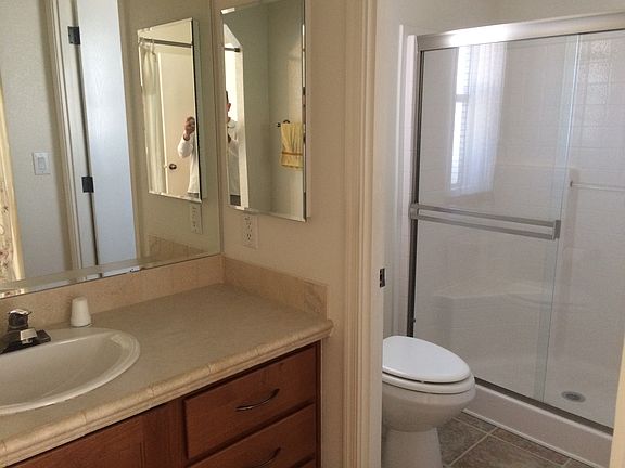 Huge like new single wide in beautiful Tucson Meadows. Front kitchen floor plan. Interior is bright and airy due to the vaulted ceilings and large windows. Interior is in excellent condition. Master bedroom and bath are both enormous. Exterior features a raised deck with mountain views. On the other side is a covered carport. Nice storage shed included. Walking distance to the clubhouse. Pet friendly community!