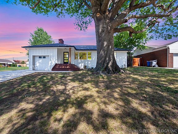 This charming home is a must-see! Professionally- and fully-remodeled to be like new. The home features all new wiring, appliances, roof, gutter, HVAC, cabinets, windows, concrete, etc. The original hardwoods have been beautifully refinished, and unique features include a true primary master suite, a roomy garage, and even a storm shelter. The lot itself is huge and on a corner, and just steps from Tulsa Fairgrounds.