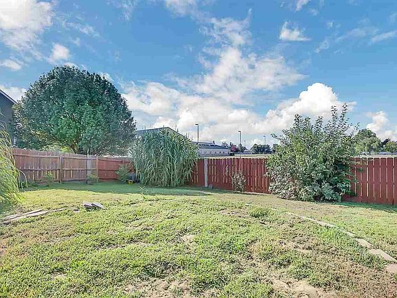 Great opportunity to buy in Goddard Schools - located on a fenced cul de sac lot with no neighbors behind you! NO Specials! Open floorplan with vaulted ceiling and daylight basement. Oversized master suite with private bathroom and tub/ shower combo. Main floor laundry. Basement is partially finished with potential to finish a large wet bar, separate work space/ crafting area, and has a third bedroom and bathroom. This home needs some work including new flooring and paint throughout but the seller is motivated!