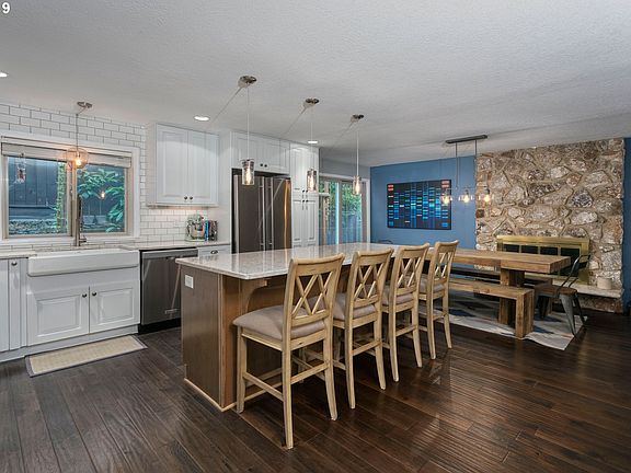 Tastefully modernized split level ranch. Home remodel throughout with high end finishes. Open concept living with large windows. Kitchen has custom wood cabinets, quartz countertops & large island. Hardwood floors, big den & complete makeover on both bathrooms. Spacious quiet lot, fully fenced beautifully landscaped backyard & pergola. Perfect retreat minutes from downtown! Seller is Oregon licensed broker [Home Energy Score = 2. HES Report at https://rpt.greenbuildingregistry.com/hes/OR10000517]