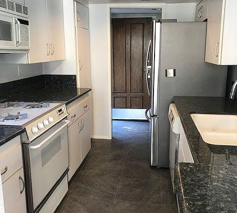 Turnkey and ready for you! 2 Spacious bedrooms located on opposite ends of the unit. New Carpet and freshly painted. Vaulted ceiling in living room with 8 ft sliding glass door that provides a really nice view and opens to a balcony. Living room has fireplace. It is open to the kitchen that features a breakfast bar and eating area. Kitchen comes with stainless steel 3 drawer refrigerator, gas stove, built in microwave, pantry and recessed lighting and granite countertops. Laundry room off entry way. 14X14 ceramic tiles. Carpet in bedrooms and living room. Master Suite offers private bathroom with large oval tub and dual sinks. 2 double door mirrored closets. Sliding glass door to balcony. Main bathroom has custom built shower with seat. Both bathrooms have granite countertops. Second bedroom also has sliding glass door to balcony. 2 closets, one double door mirrored and one put out door. All sliding glass doors have recently serviced and new screens. Balcony also has new carpet. Parking is gated and under structure. 2 parking spots come with unit, side by side. Building has new roof and newer elevator. The fireplace has floor to ceiling marble tiles and living room also features a wet bar. Kitchen pantry has pull out drawers.