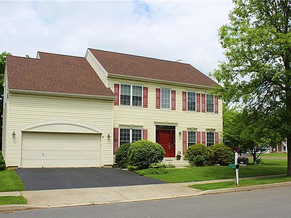 ABSOLUTELY NO HOA FEES at this 4 BEDROOM 2.5 BATH COLONIAL! 2,521 SQ FT within WALKING DISTANCE to Wild Cherry Park in Lower Macungie Township! Situated on a LARGE CORNER LOT, there is plenty of yard space on all sides of the home plus a PATIO and mature trees for SHADE and PRIVACY. Upon entry, the TWO STORY FOYER offers plenty of NATURAL LIGHT and openness between the formal living room, dining room, and staircase. The entire first floor has NEWLY INSTALLED VINYL PLANK FLOORING throughout! The family room with GAS FIREPLACE offers a cozy retreat while remaining open to the eat-in kitchen. The kitchen features WHITE CORIAN COUNTERTOPS and NATURAL WOOD CABINETRY with a CENTER ISLAND peninsula, storage pantry, and sliding doors to the patio and backyard. Off the kitchen is a hallway to the 2 CAR ATTACHED GARAGE, 1st FLOOR LAUNDRY ROOM with utility sink, half bathroom, and additional exterior door to the side yard. On the second level, the main bedroom has TWO LARGE WALK-IN CLOSETS plus a sizeable ensuite bathroom including two vanities, jetted soaking tub, linen closet, and WALK-IN SHOWER. Three additional bedrooms plus a full bathroom complete the second level. ALL GAS UTILITIES, NEW FRONT DOOR, FRESHLY SEALED DRIVEWAY, and NEWLY INSTALLED VINYL FLOORING with only ONE ORIGINAL OWNER! Located minutes from Hamilton Crossings Shopping Center and Lehigh Country Club!