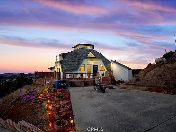 Nestled amidst towering mountains, a majestic dome stands as a testament to architectural brilliance. Its sleek curves blend harmoniously with the natural landscape, offering a breathtaking sight. The dome's facade allows sunlight to cascade inside, illuminating a serene interior. From within, one can marvel at the panoramic views of the surrounding peaks and valleys, immersing in a tranquil oasis amidst nature's grandeur. This mountain dome serves as a sanctuary, where visitors can find solace, inspiration, and a deep connection with the awe-inspiring mountains that cradle it. Absolutely 1 of a kind 360 degree Views from atop the Cupola of this home. Rare Custom built 2 story Dome Home set on a private 2 acre lot. This home was built by the original owners and has been recently updated New Roof, Interior and Exterior paint and lighting. The home has 3 bedrooms and 3 Baths with an Oversized 4+ attached RV garage W/220 workshop. Wrap around Decks are great for entertaining and large gatherings and boast Spectacular Sunset and Mountain Views. Driveway parking for 10+cars. Plenty of Land space to add ADU and or Pool. Buyer to verify all facts. 2 Kitchen photos in white and Blue are virtual photos and not the actual kitchen. Agent is related to seller. Seller is offering a $20,000 credit towards Buy down points or upgrades..