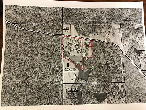 Surrounded by National Forest. A rare find. 6,87 +/- acres with 2 large ponds stocked with catfish and trout, 2 large storage buildings, large deck overlooking the pond. Large family room, 1 bedroom downstairs and loft bedroom upstairs.
