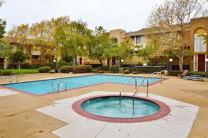 LARGE 3 level Condo for rent. Over 1600 square feet. (Most 2 bedroom condos are 1100 square feet) . -Can be set up as 3 bedrooms: 2 Bedrooms + 1 large Loft Room over the living room, with its own closet (16x10 feet - could be used as a bedroom, a big office, gym or whatever - current tenants have their fitness equipment there). -2 full bathrooms. Master bath has both a large shower and large tub with jets. -POOLS: Condo complex has pool, hot pool, community room that can be rented, and tennis courts. -FIREPLACE. Woodgrain floor in living room. Two separate balconies. -LARGE NEW WASHER & DRYER, new this year, side loading High Efficiency LG (better than in photos which show the old single washer/dryer that was replaced by separates this year. -NEW KITCHEN APPLIANCES AND UPGRADED GRANITE COUNTER and cabinets in kitchen last year. -GAS STOVE. -Rent includes water and Hot Water from homeowners association at no charge. -Large master bedroom suite, with huge double size walk-in closet and its own balcony -Huge master bathroom has jacuzzi-type bathtub plus a double size shower in one room, with a door separating it from huge sink/vanity area. - Second bedroom: Has high vaulted ceiling, looks at pool and homeowners green space on one side, and view of Mount Tam on the other side, with bathroom next to it in hallway. -HIGH CEILINGS, Large rooms. Many large, deep cabinets. Living room cathedral ceiling slants up 17 feet to loft. One bedroom has 12 ft ceiling. Hardwood floors in living rooms and one bedroom, carpet in other bedroom. Bigger than many East Bay single-family homes. -SECURITY GATES on building and on gated garage. You would have two side-to-side parking spaces in gated garage which is a premium arrangement for this building (much better than having to park behind each other). -This unit is on quiet side of the building away from street, overlooks interior landscaping and grass area, not streets. -RESORT LIVING: Quiet complex, pool, hot pool, tennis court. -BUT NEAR EVERYTHING: Convenient: Within one block of 2 Banks, Jamba Juice, Starbucks, Nations, Ross, large grocery market within 3 blocks, Many Restaurants (some open all night), Salesian High School, doctors offices - all within a quick walk -One block from major bus-lines, 3 blocks from Freeway, only 5 exits from Berkeley/Albany - A prior tenant liked the place so much that he bought a condo down the hall. Other tenants have stayed up to 6 years. - Current tenant is there but willing to show. We will clean, repair anything that's broken before your move-in. You could possibly view it immediately. Current tenants may move before the end of the month, if you need that. -Rent $2395. I usually give a rebate of $20 if rent is delivered by the first of the month. So you'd pay about $2375 if you pay rent on time. (You won't find a rental this big for under $2700 in this area.) Deposit $2500. - This is on the top-story so you won't hear neighbors above you. But you should be reasonably quiet people yourselves, since neighbors below can hear you. Sorry: No pets, no smoking. Owner pays water, hot water and trash. Other utilities are tenant's.