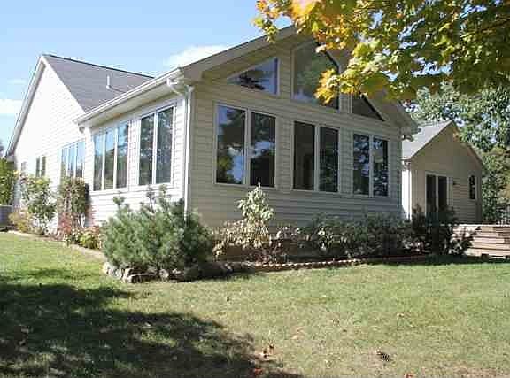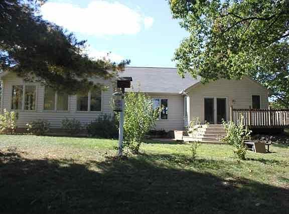Nice, private location with access to North side of Goose Lake a great fishing & 10 MPH boating lake, some lake views from home. 3 sided gas fireplace in living room with cathedral ceilings. Kitchen has ceramic floors with a breakfast nook. Large family room with lots of windows and wooden deck and a storage shed, a partial basement with a finished rec room. Master bath has whirlpool tub and shower. New water softener. 2 bedrooms on main level and possible 3rd bedroom currently used as an office