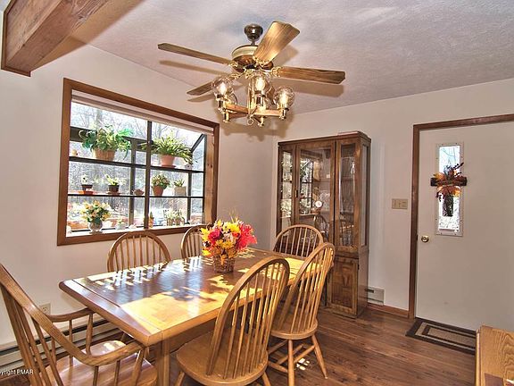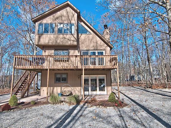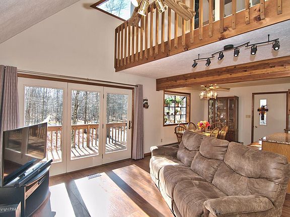 FIRST TIME ON MARKET! Pride of ownership abounds in this 3 bed/2 bath contemporary home in The Glen at Tamiment. Enjoy 3 levels of living space & lots of natural light. 1st floor consists of lge Family Room w/wood-burning stove & sliders to patio. Main living level is on 2nd floor w/comfortable living room w/brick-faced wood-burning fireplace, sliders to deck, dining area & new pergo flooring. Updated kitchen has granite counters, ceramic tile floor & tile backsplash. Completing this floor are 2 good sized bedrms & main bath. 3rd level brings you to loft area, master bedrm w/bath & large sunroom complete with hot tub. Oversize 1 car garage. Taxes under $4500! Dont' miss this one! View photos & virtual tour. Make your appointment today!