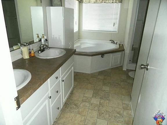 Property Details Not a short sale or REO. Mobile home built in 2005 with beautiful spacious open floor plan on corner lot with great curb appeal. Move in ready 4bd/2ba, 1849 sq ft, master suite with large sitting area, master bath has separate garden tub and shower. Amenities included are ceiling fans, stove, refrigerator, dishwasher, microwave, Day Creek storage shed, and 52 inch TV built into wall unit. Neutral carpet and paint with bull nose corners. Home shows pride of ownership. Property located in a desirable park with pool, spa, recreation room, and beautiful well kept grounds. Seller motivated. Please give 2 hour notice prior to showing. Thank you for showing. Submit all offers. If your client needs help with financing a mobile home, go to:www.21stmortgage.com. They have great plans, no PMI.