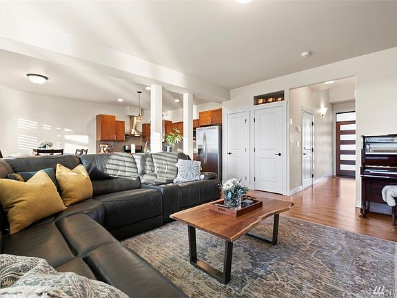 Gorgeous newer Bellingham home w/ city & bay views in a superb location! Built in 2015, this beautiful home has lovely finishes & a great layout! Spacious living rm w/gas fireplace, kitchen w/quartz counters & tile backsplash, island w/eat-in bar, stainless steel appliances & dining area looking out to backyard/view. Master features view of Bellingham & beyond, big walk-in closet & ensuite bath. Enjoy sunsets & BBQs on the west-facing patio w/firepit! Convenient location, close to trails & more!