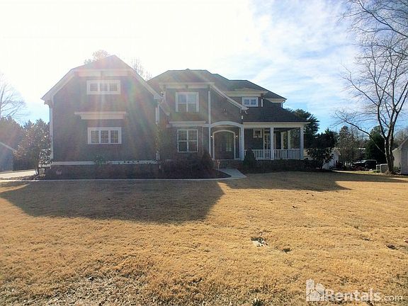 This stunning custom home on a nearly half-acre lot offers incredible sunset views! The huge, covered flagstone front porch and screened flagstone back porch with a stone fireplace overlooking the large, heated custom pool offer fantastic outdoor entertaining spaces. The interior is sure to impress as well, with wood floors, extensive moldings, iron-spindle banisters, beautiful lighting fixtures, tray ceilings, an elegant formal dining room, and a cozy family room with an impressive coffered ceiling. Even the mudroom/laundry room with built-ins is gorgeous! The kitchen is an absolute showstopper that cooks will fall in love with, complete with a 48" gas range with a pot filler, stainless steel appliances, gorgeous granite counter tops, a recycled glass backsplash, a copper farmhouse-style sink, a butler's pantry, and a built-in desk. The first-floor master retreat boasts pool views, and a bath with an awesome limestone shower with four jets, two shower heads, and a modern glass enclosure. The rec room with an industrial-look full wet bar and exposed brick accents can comfortably accommodate a billiards table, and is perfect for game day. Rent includes lawn care. Tucked away in the quiet, desirable Lake Norman community of Rockridge Shores, this home is conveniently located approximately five minutes from I-77 access and shopping and dining at The Shops at The Fresh Market, and is close to Jetton Park, Publix Super Market at Magnolia Plaza, desirable schools, and more. You have to see this one to believe it!