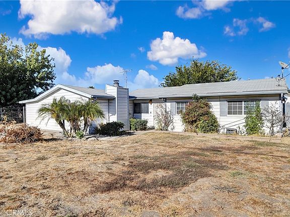 Welcome to this charming single story 2100 square foot Wildomar home with great potential! Built in 1970, this 3 bedroom, 2 bathroom residence rests on a spacious 20473 square foot lot, offering ample space and convenience. Boasting a 2-car garage and an extended driveway allowing access to the backyard ideal for potential RV parking, this home is designed for comfort and practicality. Upon entering, you will be greeted by an abundance of natural light that fills the home. The wood plank floors, crown molding and natural light create a warm atmosphere throughout. To the right of the entrance, a versatile space awaits, perfect for use as a family room or living area. This space features a creative rock wood-burning fireplace, high ceilings, a large window, and a ceiling fan. Adjacent to this room lies another flexible space housing the laundry hook ups but big enough for an office or extra storage space, adapting effortlessly to your lifestyle needs. The kitchen, complete with ample counter space, a 4-burner stove and oven, dishwasher, and a window beyond the sink, adding to the kitchen's brightness. It seamlessly flows into the dining area, adorned with natural light streaming in from the sliding glass door and window. Continuing down the hallway, you will find the bathrooms, bedrooms and lien closets. The hallway bathroom features a shower/tub combo, single sink vanity, and tile flooring. The spacious master bedroom boasting carpet flooring, mirrored closet doors, a ceiling fan, and a sliding glass door leading to the backyard. The master suite also includes an attached bathroom with a walk in shower, single sink vanity, tile flooring and offers an complementary door to the hallway. The additional bedroom offers carpet flooring, large windows and closet space. In the backyard, this property offers endless possibilities for outdoor enjoyment. A spacious covered back patio provides a perfect spot for relaxing or entertaining, while a detached garage sits conveniently at the end of the driveway, adding both functionality and charm. The lot features a large, mature tree that offers shade and character, along with plenty of open space that serves as a blank canvas, ready for your landscaping or outdoor design ideas. Conveniently located near shopping centers, freeways, and highways, this home offers a perfect blend of comfort and accessibility.