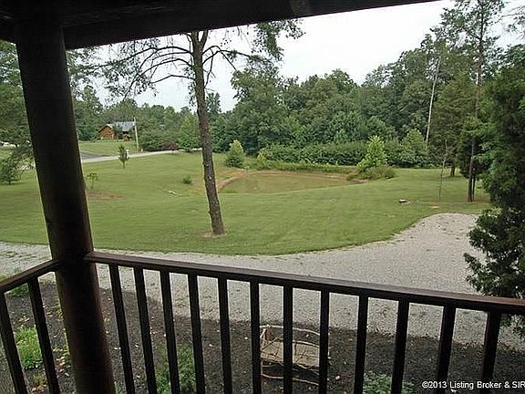 Would you like to live in your vacation home? You could here in this Awesome Log Cabin built in 2001 on 2.75 Acres (2 lots). Nestled back in the hills on dead end road on Cabin Hill Road this 3 bedroom home with two full baths is a beautiful setting. Master on 2nd floor has walk in closet. There is one bedroom on the main floor with two on the 2nd level that are joined by an open loft that overlooks the large Family Room. There is an unfinished basement with 10ft ceilings that is ready to be finished.The HVAC system was replaced in May 2013 with a high efficiency system. Outside you are surrounded by trees and there is a small pond to fish on the property as well, stocked with large Koy, Blue Gill, Bass & Catfish. There is a shed and leinto. Relax on the wrap around porch while you watch for the many animals native to the area, deer visit nightly, pond has Koe, Basds, Blue Gill, Grass Carp and Catfish. Kitchen has rock floor. Did I mention this lovely home is on Public Sewers and Public Water? All of this and only about a 25 minute drive to downtown Louisville. One mile from Deams Lake,only a few minutes to The Joe Huber Family Farm 30 minutes from Kennedy bridge too.