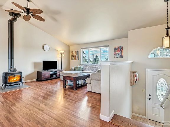 This Tumalo hobby farm has it all. The open concept, updated kitchen and living room are upstairs as well as the master bedroom and 2 guests rooms. Downstairs you'll find a large bonus room, the 4th bedroom as well as an office. Bring the kids, the chickens, the horses, and the gardens- this place has room for everyone. Located on a paved street in an area of well kept homes.