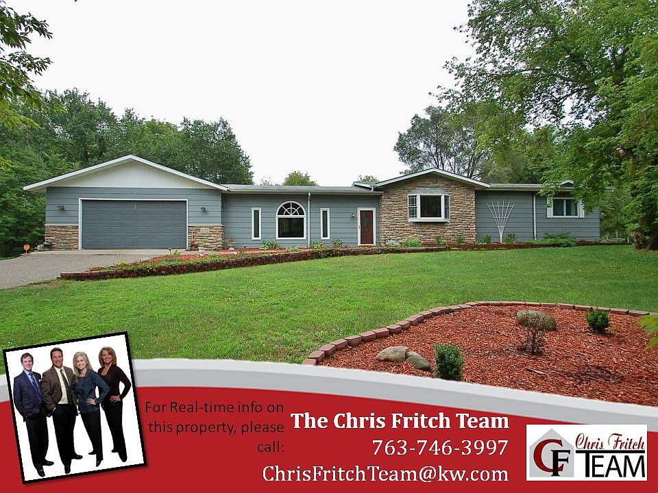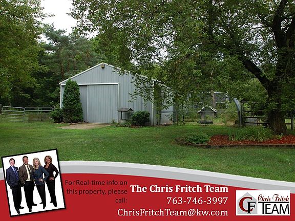 Bring Your Horses! Nicely treed lot, spacious/open flr plan, gleaming oak flrs, tile backsplsh, Stainless Steel appliances, built-ins, huge master suite with a walk-in closet, 2nd bedroom also has a walk-in, soaring vaulted Living Room w/gas fireplace, Lower Level amusement room with wet bar, huge deck! 45x30 pole barn + 30x14 barn for horses/fenced, Privacy galore!! ~ Call for a showing 763-746-3997 or ChrisFritchTeam@kw.com.