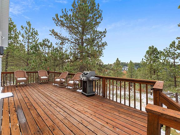 Listed by Emily Costopoulos, Keller Williams Black Hills Realty, 858-472-6986. Tucked away in the coveted Terry Peak ski area, only minutes from historic Deadwood, famous Mickelson Trail and other recreational activities this cozy cabin backs up to a priceless view of pines in every direction. Large picture windows highlight the vaulted living space and upstairs loft. Two bedrooms, one bathroom with room to add more value in the unfinished walkout basement with newly installed black French doors. Other upgrades include brand new black stainless steel appliances, and updated light fixtures throughout. This fully furnished cabin is the perfect escape or great vacation rental investment property.
