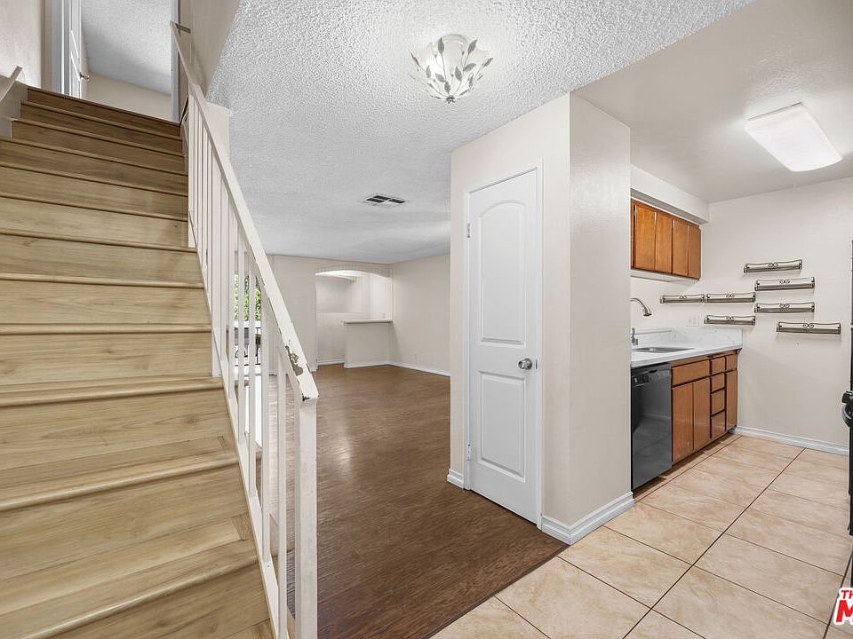 Charming Two-Level Condo in the Heart of Canoga Park. Welcome to this beautifully updated and well-maintained two-level condo offering comfort, style, and convenience in a desirable Canoga Park location. This inviting home features a smart and spacious floor plan with 2 large bedrooms and 1.5 bathrooms, perfect for first-time buyers, small families, or investors. Step into the light-filled living room with a cozy fireplace and a private balcony ideal for relaxing or entertaining. The main level also includes a convenient half bath, while both bedrooms and a full bathroom are privately located upstairs. Enjoy beautiful new luxury vinyl floors upstairs, laminate, and tile flooring throughout living and kitchen areas. An updated kitchen boasting quartz countertops, a deep stainless-steel sink, modern faucet, and newer appliances. For added convenience, a stackable washer and dryer is located inside the unit. Additional upgrades include a newer HVAC system and Nest thermostat providing energy-efficient comfort year-round. Tucked away at the back of the building for added peace and privacy, this unit also comes with two tandem parking spaces. The complex features a private swimming pool and is centrally located near shopping, restaurants, and public transportation. HOA Fee includes Hot and Cold water and trash/sewer. Don't miss this fantastic opportunity to own a move-in ready home in a prime location. Schedule your tour today. This one won't last!