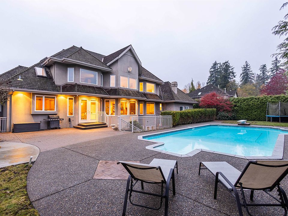 Welcome home! This stunning Executive-style residence in Elgin Park Estates sits in one of South Surrey's most desirable neighbourhoods and truly has it all. Designed with comfort and functionality in mind, the thoughtful floor plan offers generous s space for every lifestyle. Upstairs features 3 bedrms, each with ensuite, one bedrm with ensuite on main, plus 2 additional bedrms below for guests or extended family. Private backyard oasis, complete with a sparkling pool and plenty of space for outdoor entertaining. The bay garage includes one over-height door, room for a workshop, and RV parking. Located just half a block from the trail leading to Elgin Park secondary. Don't miss your chance to own this exceptional South Surrey gem!