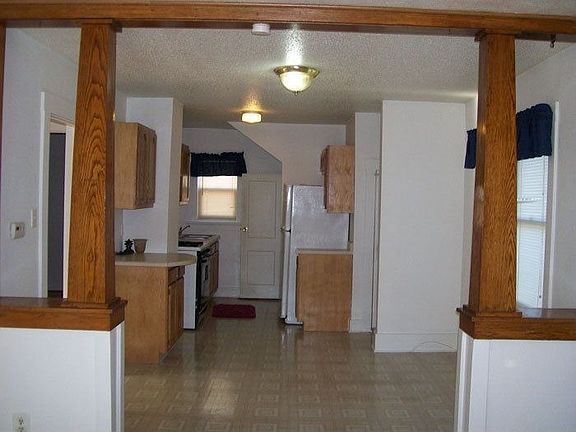Nice two bedroom home on a corner lot. This house has an open floor plan and features oak trim, oak colonnades and oak kitchen cabinets. There is plenty of room to roam and even has a full basement, washer and dryer hook ups, a fenced in yard, off street parking, energy efficient furnace with central air, newer windows and a wooden deck with a southern exposure. It is a very comfortable home at a very comfortable price. No HUD. All others call today!