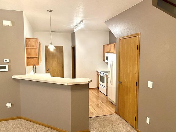 Here's your opportunity to own a well-maintained, low-maintenance home in a great NW location near Marketplace and St. Alexis. Open, spacious main floor consists of a nice-size living room, dining room, and kitchen with storage closet/pantry and 1/2 bath near the garage entrance. The kitchen and main floor bath have newer tongue and groove oak flooring. The main entry features a waterproof vinyl plank flooring landing area, giving you a solid-surface place to remove shoes. Upstairs you will find a large master bedroom with a walk-in closet and a second bedroom with another big closet. Upstairs full bathroom has a sink outside of the door where the tub/shower and stool are located. This bathroom also has newer waterproof plank flooring. The dedicated laundry room is conveniently located on the upper floor with the bedrooms. Nearly the entire home has newer paint and fixtures, including ceiling fans in both bedrooms. Single garage is heated, insulated, and has storage shelving and a painted floor. Extra parking is available in the complex. Association fee ($145) covers: exterior insurance, water sewer, garbage, lawn care and snow removal. Great, virtually no-maintenance home in excellent condition! Will qualify for VA financing.