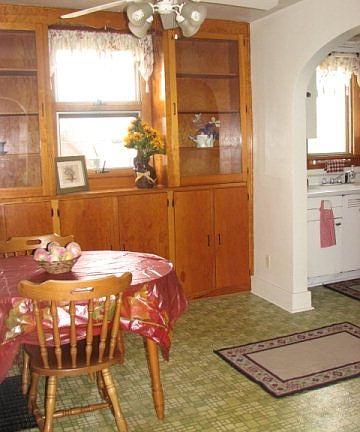 This could be a very cute house with some TLC. Spacious, fenced, double corner lot and two car garage include off street parking. A large enclosed front porch offers first floor laundry facilities or an additional bonus room. Lots of storage in the dining area with the built in hutches and book cases. Hardwood under carpeting. Includes A.H.S one year home warranty and blower motor on furnace as just replaced November 2012.