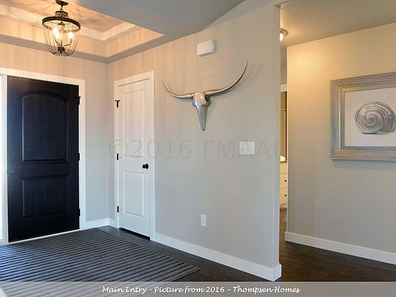 Elegant South Fargo rambler on a corner lot. This home has an open layout perfect or entertaining and every day living. Stone and board & batten Siding, irrigation system and a fully fenced yard allows you to move in and start enjoying the home. The kitchen features stainless Steele appliances, gas range, large island and quartz counter tops. This home was also built to include and entertainment package. The front of the home has a large bedroom with huge window for a bright cheery feeling. The master bedroom has a private bath as well as a large walk in closet. The living room has vaulted ceilings and fireplace with built-ins for added storage. Find your way to the lower level to a huge family room and an additional two bedrooms for added living space.