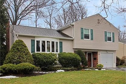 Pristine and updated split level home in great neighborhood. Spacious entry foyer. Cozy den on the ground level w/new carpet. Beautiful updated kitchen addn. w/granite countertop, tiled backsplash, custom cabinets, breakfast bar and new appliances. Great high beamed ceilings. Airy breakfast area surrounded by large custom windows overlooking the backyard. Access to a large deck from the kitchen - perfect for summer BBQ. Pavered walkway to backyard. Lovely new bow window in formal living room. New full bath off den. All new windows on 2nd flr. Finished basement for playtime. Excellent location - close to schools, NYC bus and train. Convenient to all major highways, downtown and shopping. MOVE-IN-CONDITION!! Don't miss this loving home.