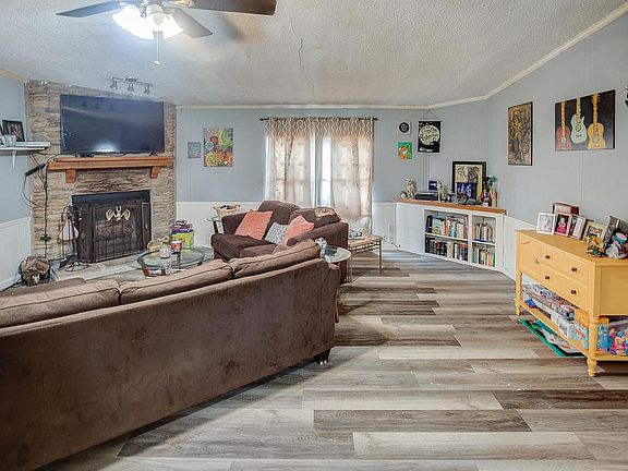 Back on the Market - seller had under contract and appraised, but were not able to close due to the missing title on the mobile home. Seller has now applied for a bonded title and should have in hand soon. 3 bed home with an open floor plan on a large lot with an attached garage. The Master suite is spacious with an attached bathroom with a garden tub and separate shower. The living room has a stone fireplace. The outdoor space is nice with a breezeway to the attached garage and a nice deck and large yard.