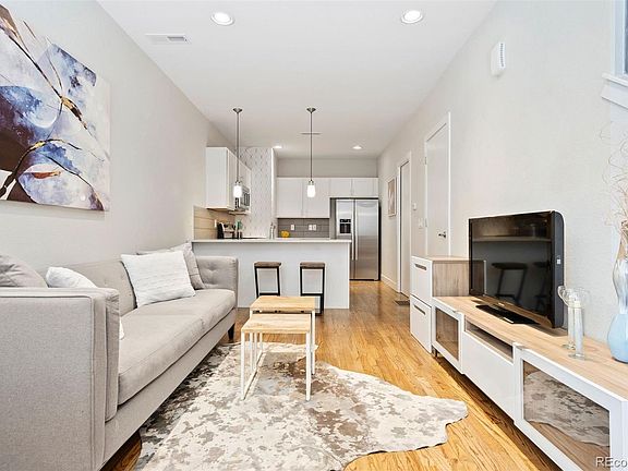 Fall in love with this exquisite town home located in the heart of Jefferson Park. This home, nestled on one of the premium blocks in the neighborhood, seamlessly showcases contemporary elegance at every turn. Step into an abundance of natural light that gracefully illuminates each level. The main floor presents an inviting open layout featuring a modern kitchen, breakfast bar, living room, dining nook, and a powder bathroom. Indulge in premium finishes, including hardwood floors, upgraded cabinets, quartz countertops, and stainless-steel appliances. On the second level, you'll find a spacious bedroom with ample closet space and an en-suite bathroom with soaking tub. In addition, a versatile bonus room ideal for an office, workout area, den or guest quarters. Venture to the third level to discover a luxurious primary bedroom with a ton of natural light, a spacious walk-in closet with custom built-in storage shelves and access to the fabulous rooftop patio. The primary bathroom offers a top-of-the-line walk-in shower, dual sinks, and quartz countertops. Enjoy unparalleled ambiance on the rooftop patio, with stunning views of the downtown Denver skyline. Additional features include a one-car attached garage and a laundry room with full-size washer and dryer. Located on a tranquil street with ample street parking, this home offers a true Denver urban lifestyle experience. Explore nearby attractions such as Jefferson Park, Briar Common Brewery + Eatery, Jefferson Park Pub, 2914 Coffee, Sexy Pizza and Sweet Action and more with ease. Don't miss this opportunity to live in one of Denver's most desirable neighborhoods. Seller is offering a $15,000 seller concession, which the buyer can use to lower the rate or cover closing costs.