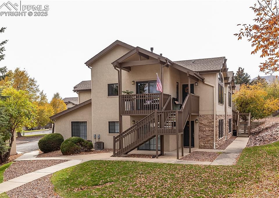 Welcome to this beautiful, sunny, cheerful, main level unit that is waiting just for YOU in the desirable Arbors at Mountain Shadows Community! This charming end unit has a wide open, easy accessible floor plan, is in GREAT condition throughout, has brand New carpet, a brand New stove, a gas fireplace, a generous sized, full bathroom, lots of windows for brightness, lots of storage & all of the appliances stay - including that new stove, fridge, dishwasher, microwave, washer & dryer. Thoughtful, tasteful touches are throughout this comfortable home - decorative lighting with ceiling fans, crown molding, central A/C, 2-tone cabinets in the kitchen, built-in storage & shelves in the living room, grab bars in the bathroom, lots of storage in the bathroom vanity, a roomy, separate storage closet near the laundry area & neutral window coverings throughout the home. The unit comes with an attached, oversized garage with plenty of storage & a cozy covered patio where you can enjoy your coffee or tea to greet the day or a glass of wine in the evening. The unit is located in a well maintained, quiet community nestled in the foothills on the northwest side of town. This popular, well landscaped complex includes a sparkling, outdoor pool with a hot tub, a fitness center & clubhouse with plenty of guest parking close by. Your HOA fees cover community landscaping, all kinds of fun community amenities, trash, snow removal & more in a community where the HOA is managed by the residents. Convenient to the Foothills & Blodgett Peak Open Spaces & Trails with easy access to Garden of the Gods, Rockrimmon, Peregrine & I-25 is just minutes away. You are also close to shopping & some great area restaurants. This low maintenance, peaceful unit is perfect for 1st time home buyers or for anyone wanting a comfortable, convenient lifestyle. Schedule a look today & Welcome Home!
