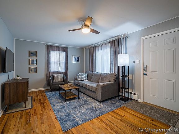Great updated and super clean duplex design with separate private basement entrance. Both units are fully furnished and updated large kitchens, each unit has washer and dryer, and electric is separate metered, with boiler heat. Hardwood floors on main and luxury vinyl flooring in basement and newer windows. Large 1 car detached garage with extra storage with fenced backyard and corner lot.
