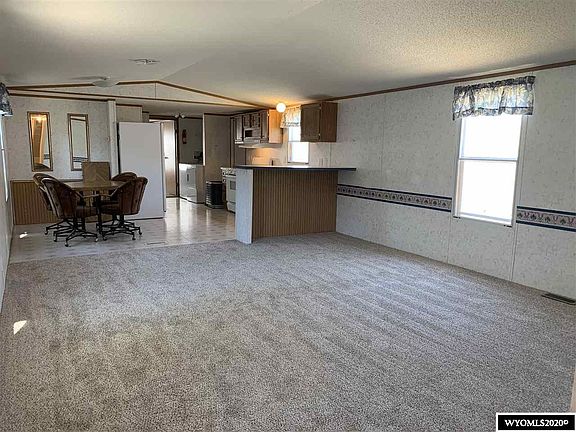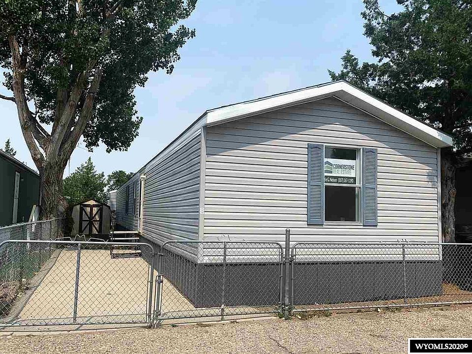 This home was built in 2004, and has 3 bedrooms and 2 baths. The large master suite has a walk in closet and extra storage. No land included and the home is in a 55+ mobile home park. Fenced yard, porch, shed, washer/dryer, central air, shed and kitchen appliances are included. Lot rent includes water/sewer/trash. Contract for Title/Seller carry terms are an option. Call Dorie G Nelson/Cornerstone Real Estate 307-267-1190