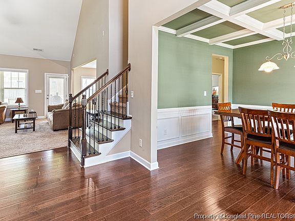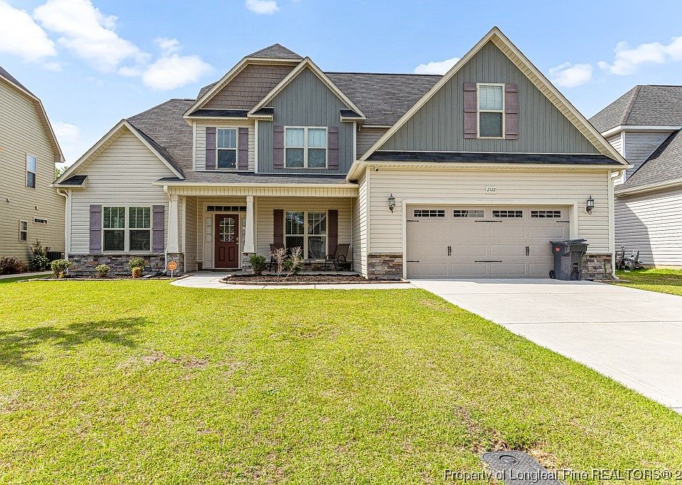New Price $379,999 for 5 bedroom 3 full bath home located in Village of Rockfish. 1st Floor has L Shape Kitchen w/island, plenty of cabinet space, granite countertops, stainless steel appliances and breakfast nook. Living Room is open kitchen, gas fireplace and built in bookcase. Large formal dining room that will easy accommodate 8 top dining set. Main Bedroom and another bedroom are located on FIRST floor. Upstairs 3 additional bedrooms with full bath and loft. Enjoy your mornings and evenings on covered front porch and rear porch. Want a pool but not maintenance or hassle, there is a community pool that is within a few minute walk from this two story home.